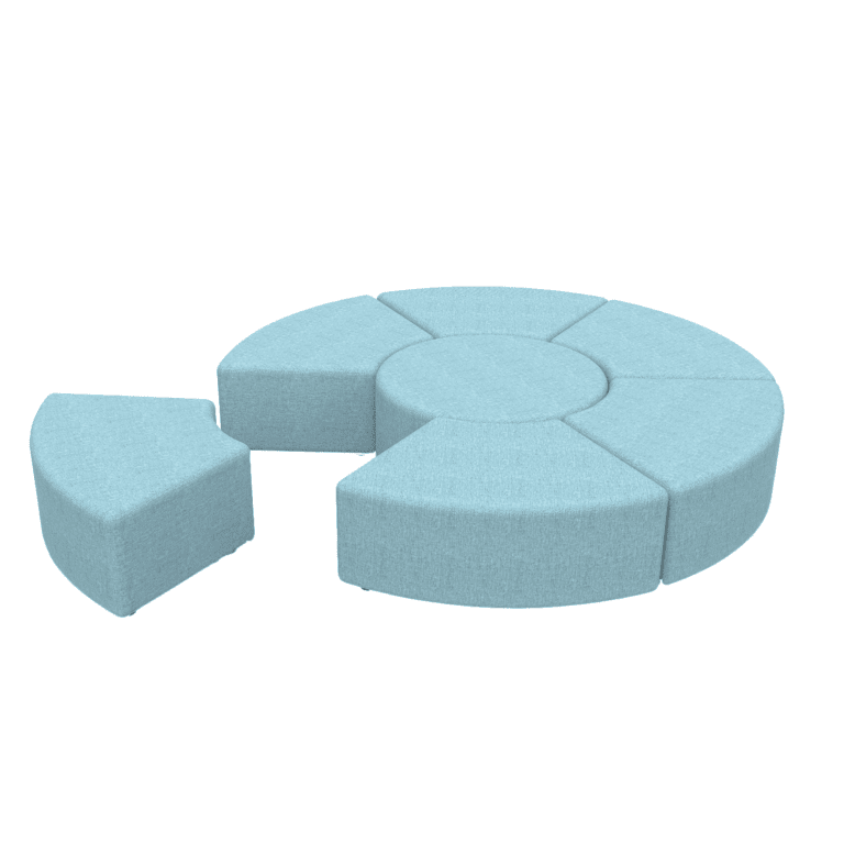 Puffs y cojines diseñados para espacios educativos: áreas de descanso, rincones de lectura y aulas creativas. Materiales resistentes y cómodos que fomentan el confort informal y la participación activa de los alumnos.