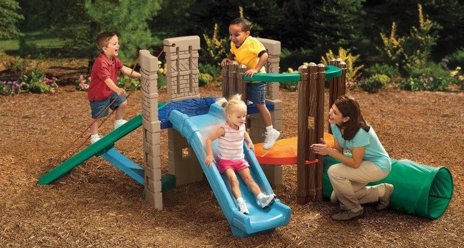 Juego de exterior.Torre compuesta de 2 niveles de altura con plataformas semicirculares. Dispone de una rampa con cuerdas de acceso y tobogán de bajada en la superior. Barandilla de vigilancia en la inferior y túnel de gateo a nivel del suelo.