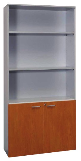 Armario con puertas bajas 5 huecos (3+2). Tablero de 19mm. con recubrimiento melamínico. Trasera de 10mm del mismo material. Canto de ABS de 1.5 mm. Dotado de cuatro niveladores accesibles desde el interior. Los estantes y divisiones son de 19 mm y van predefinidos de serie, según distribución de estantes recomendadaos. Regulación de altura de los estantes cada 32 mm. Puertas batientes con bisagras de apertura 110 º y sistema de montaje rápido.