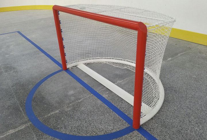 Las porterías de hockey patines están pintadas con pintura epoxi de alta calidad, seguido de un secado al horno para garantizar durabilidad. Las esquinas superiores están cortadas a un ángulo de 45 grados.
