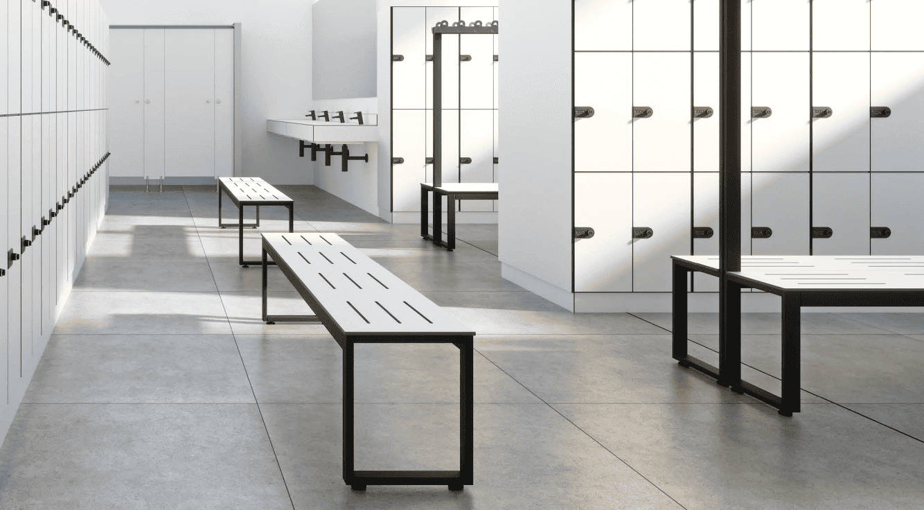 Banco minimalista, robusto y con colores neutros. Estructura metálica negra con niveladores y panel fenólico de 10mm. Disponible en blanco, gris, grafito, turquesa, mostaza o madera nórdica.