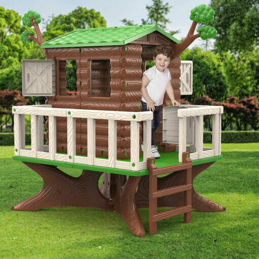 Está elevada como una verdadera casa del árbol, y tiene un amplio espacio interior con 4 ventanas, 1 puerta, escaleras y una barandilla … ¡Nunca antes habías visto una casa de juegos como esta! ¡Es una increíble casa de juegos donde los niños vivirán experiencias inolvidables!