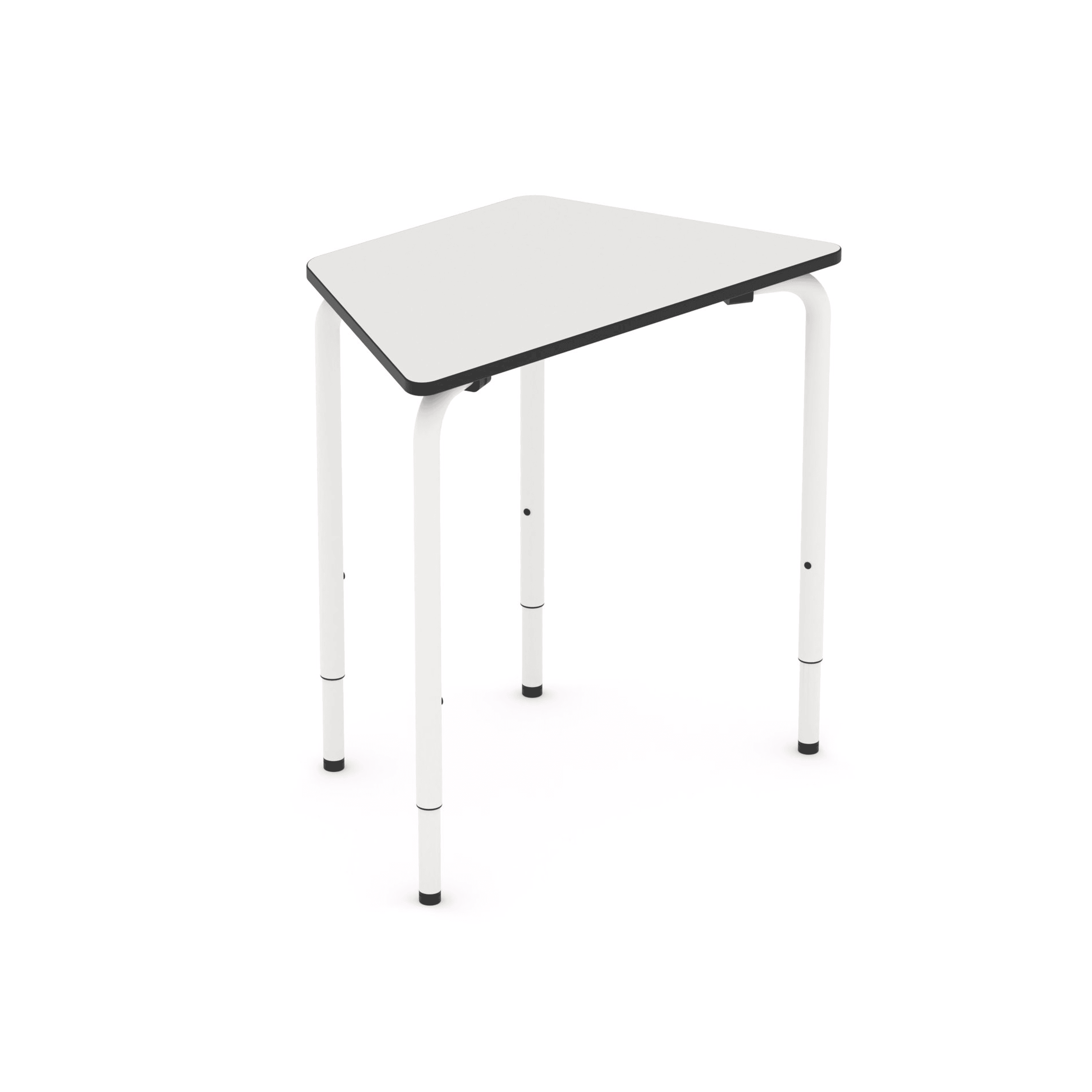 Pupitre individual modelo Alare Trapecio en melamina. Disponible tanto en altura fija como regulable en altura. Opción de fabricación con ruedas en su versión fija.