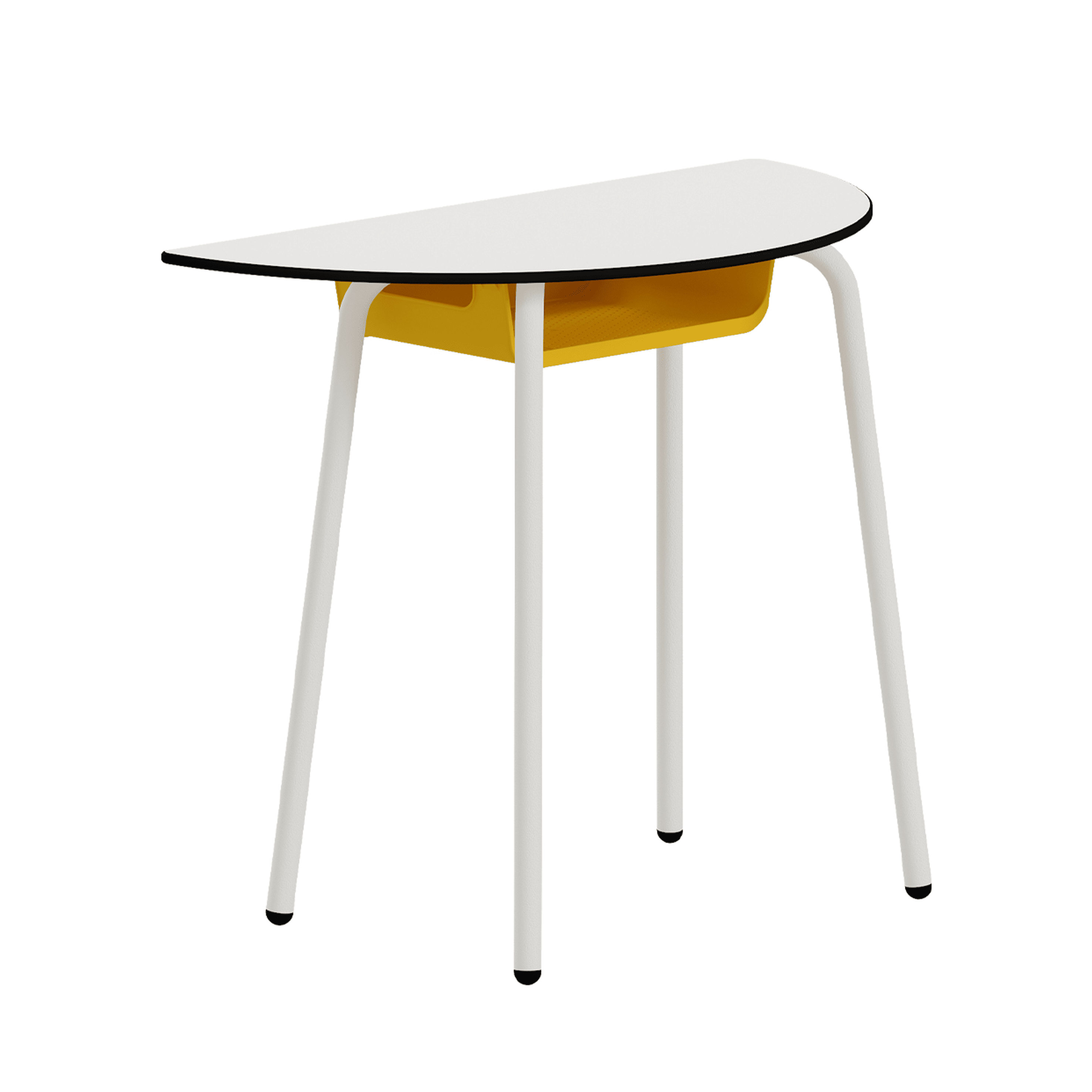 Pupitre colaborativo fabricado con estructura metálica soldada de tubo de ø30 x 1,5 mm. que le proporciona una gran solidez, pintada en epoxy blanco microtexturado RAL 9010. Disponible en tres tipos de tablero de 90×45 cm, CDF Blanco de 16,4 mm (compuesto de fibras de densidad compacta), Fenólico Blanco o Nórdico de 12 mm (resina fenólica hidrófuga de alta resistencia). Disponible en 3 alturas T4-T5-T6. Opcional: cajonera BOX.