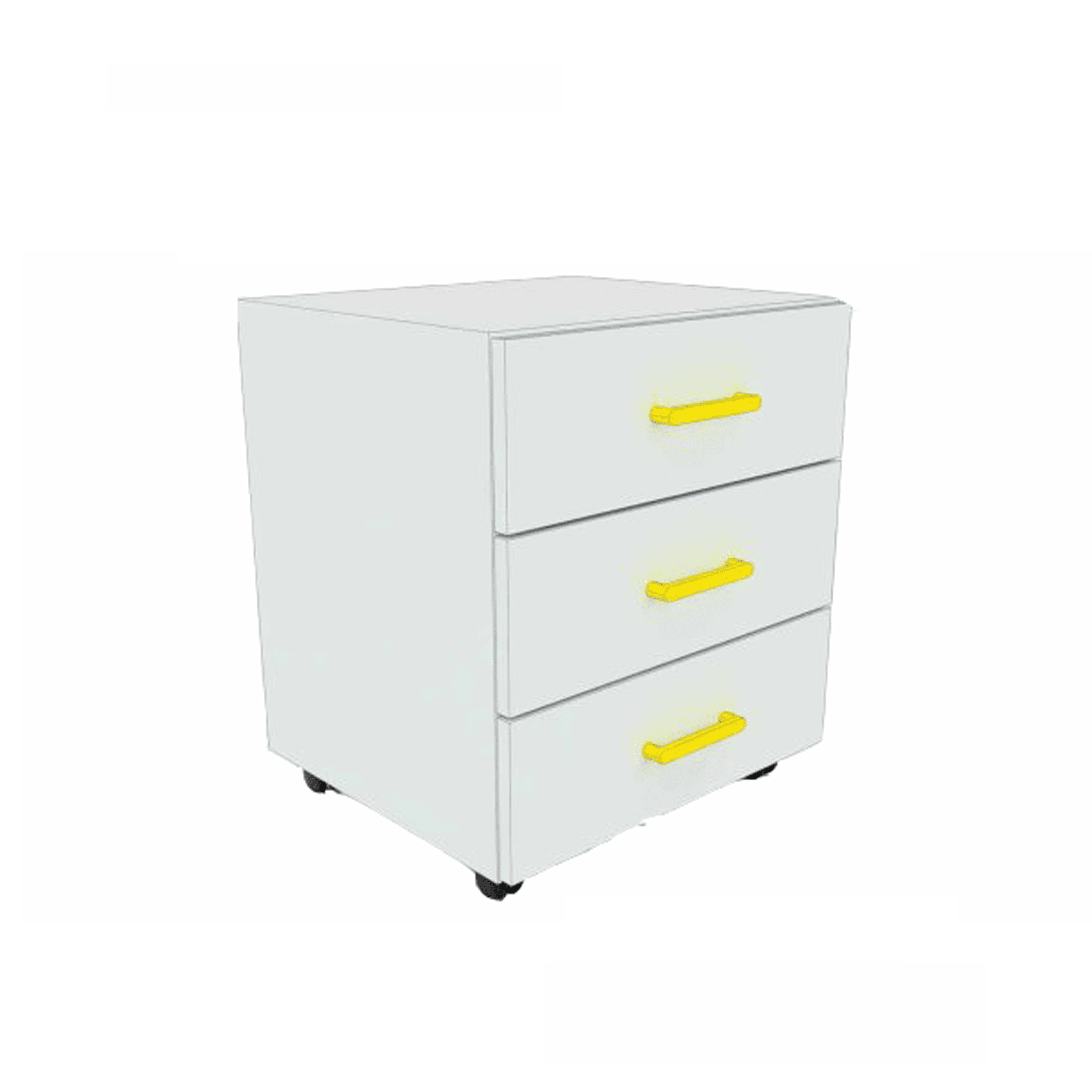 Tiradores de plástico. Cuatro ruedas, dos de ellas con freno.