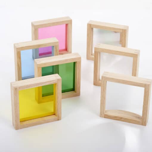 El set de 7 cuadrado contiene incrustaciones en rojo, amarillo, verde, azul, lupa, espejo plano y espejo cóncavo / convexo.