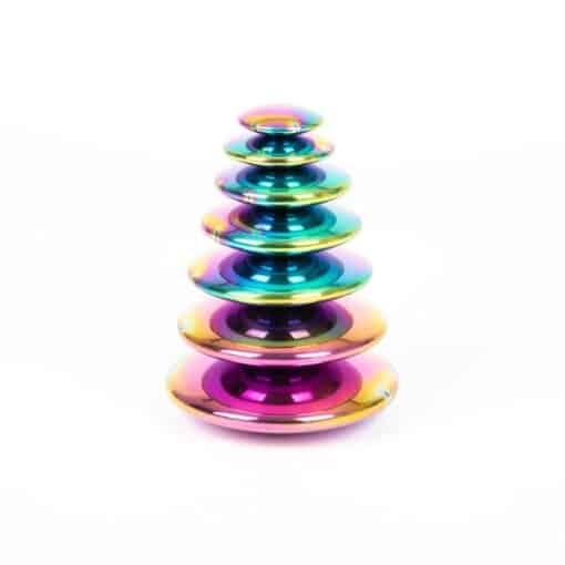 Robustos, construidos en acero inoxidable, estos 7 gigantescos botones de colores tienen una agradable forma de disco redondeado con bordes lisos sin costuras y están graduados en tamaño de 50 mm a 140 mm de diámetro.