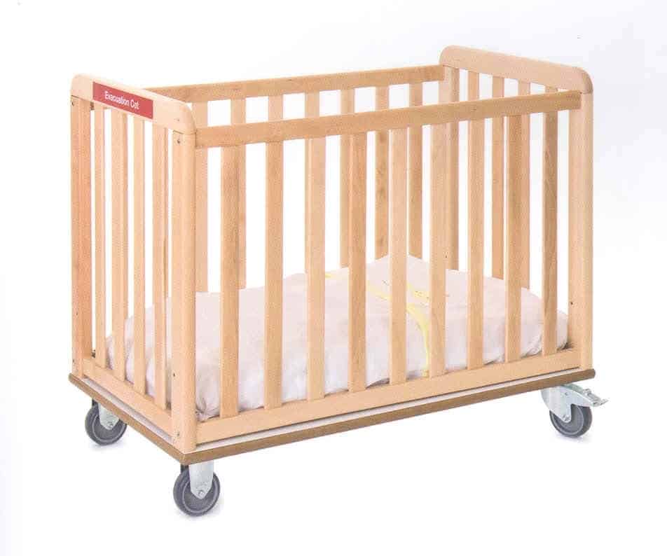 Cuna ideal para escuelas infantiles, además de facilitar el descanso sus medidas (100 x50 cm) y sus ruedas altas y giratorias son perfectas para maniobrar en caso de evacuación por emergencia.