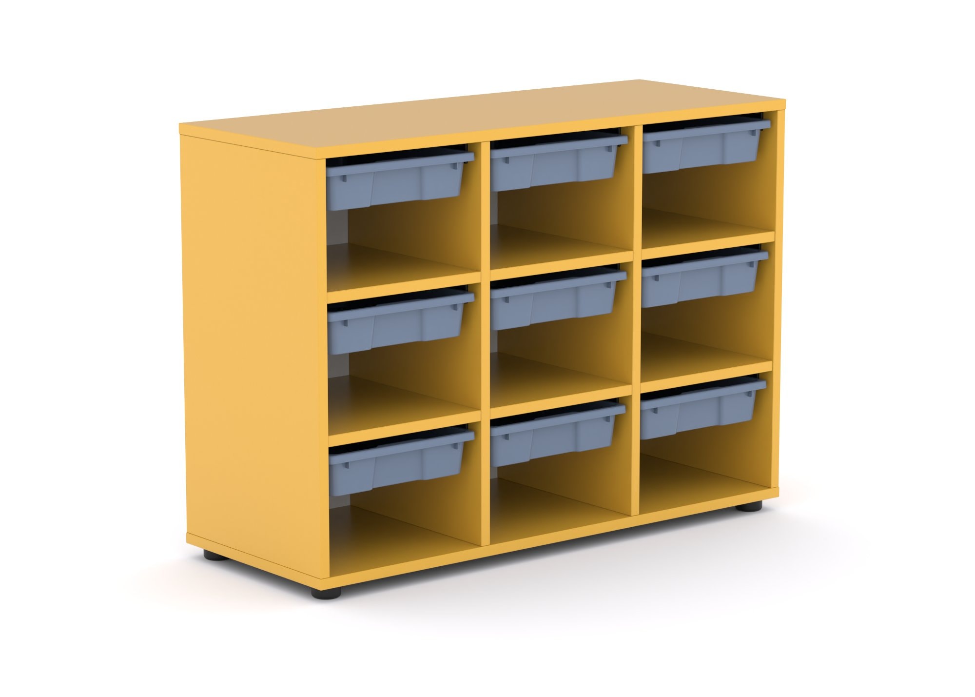 Armario fabricado en melamina. Cuerpo de 19mm. y trasera de 8 mm. de espesor. Patas de PVC con nivelador interior. Capacidad de alojar 9 gavetas o gavetas de dos alturas. Queda disponible un hueco de almacenaje en la parte inferior de la gaveta colgante.
