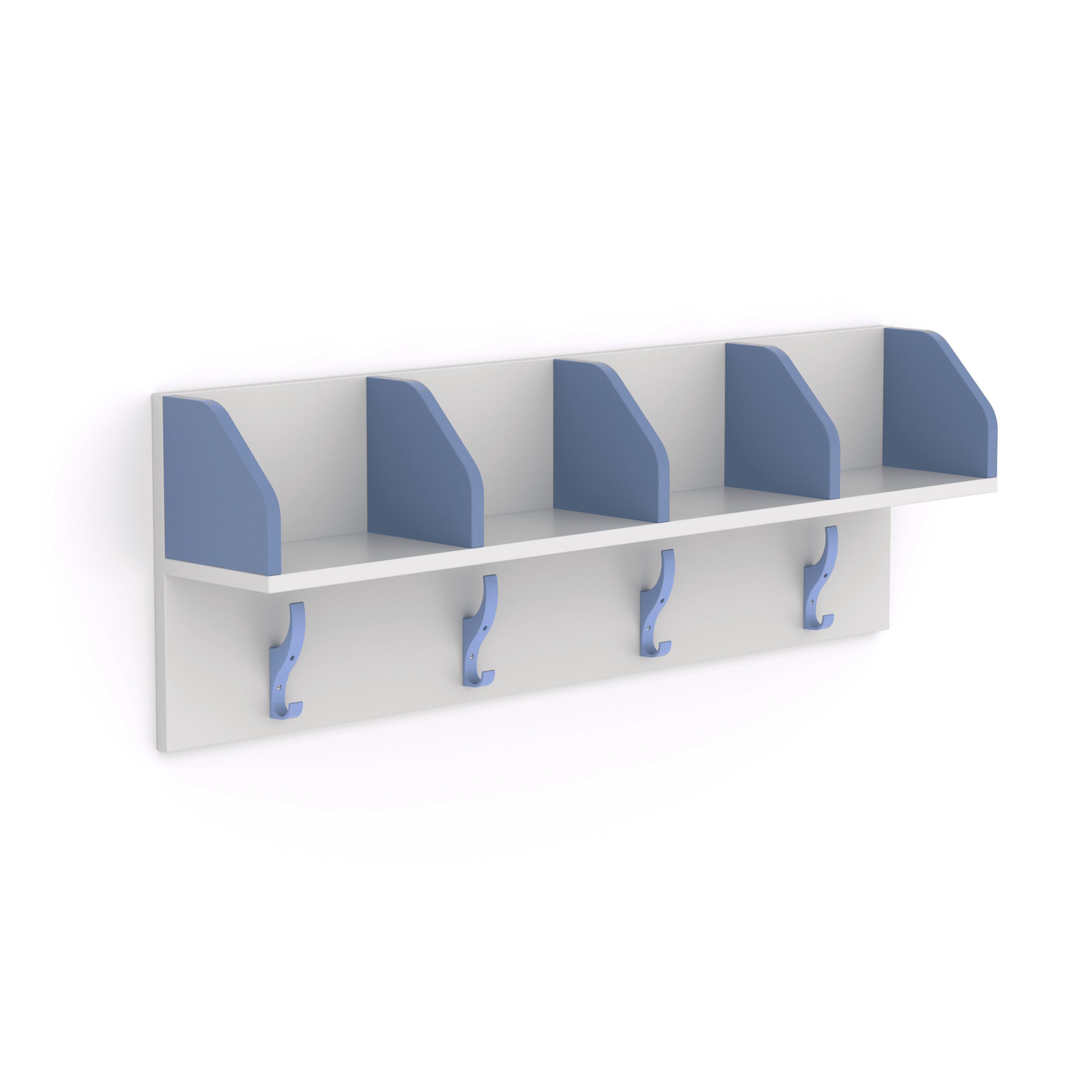 Fabricado en melamina de19mm de espesor con perchas de PVC. Largo 120cm. Perchero de 4 colgadores con casilleros