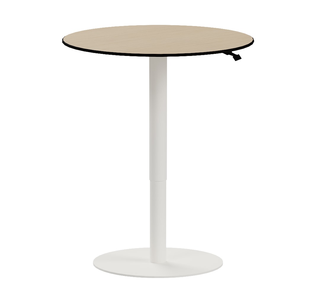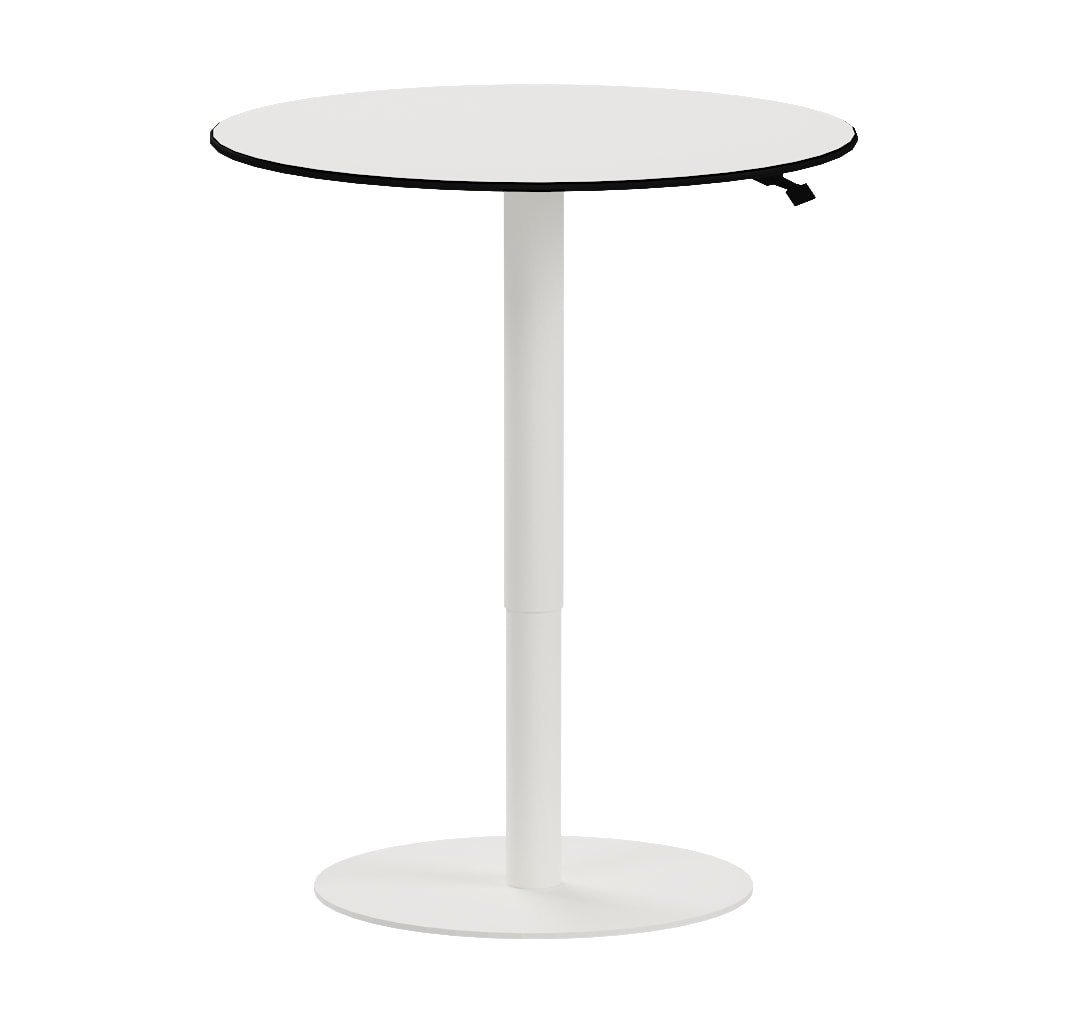 Mesa redonda de Ø80 cm, regulable en altura de 63 a 101 cm T4, T5, T6, T8, fabricada con estructura metálica soldada que le proporciona una gran solidez, pintada en epoxy blanco microtexturado RAL 9010.