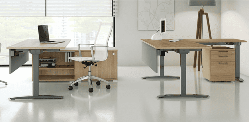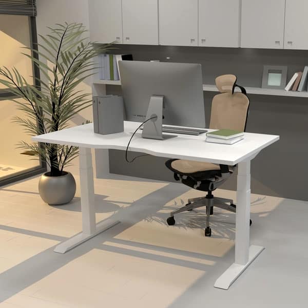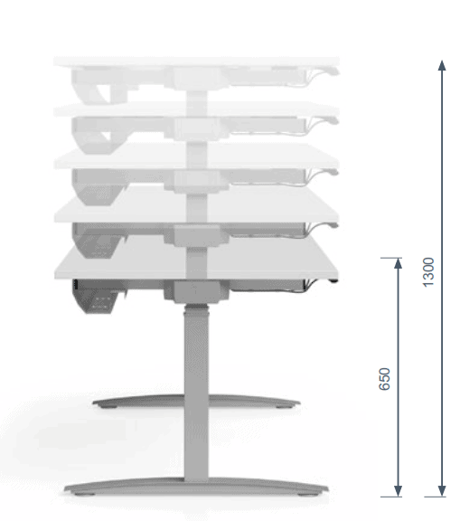 Mesa operativa con un diseño moderno y futurista. Hay dos modelos a escoger: la fija o la elevable. La mesa elevable dispone de un sistema eléctrico que permite adaptar la altura de la mesa según las necesidades del usuario. Altura mínima de mesa de 650 mm. y máxima de 1300 mm.