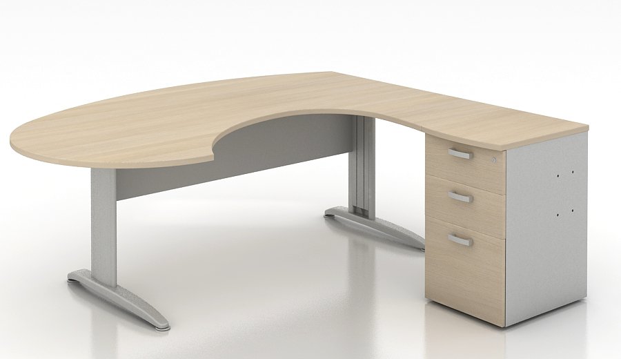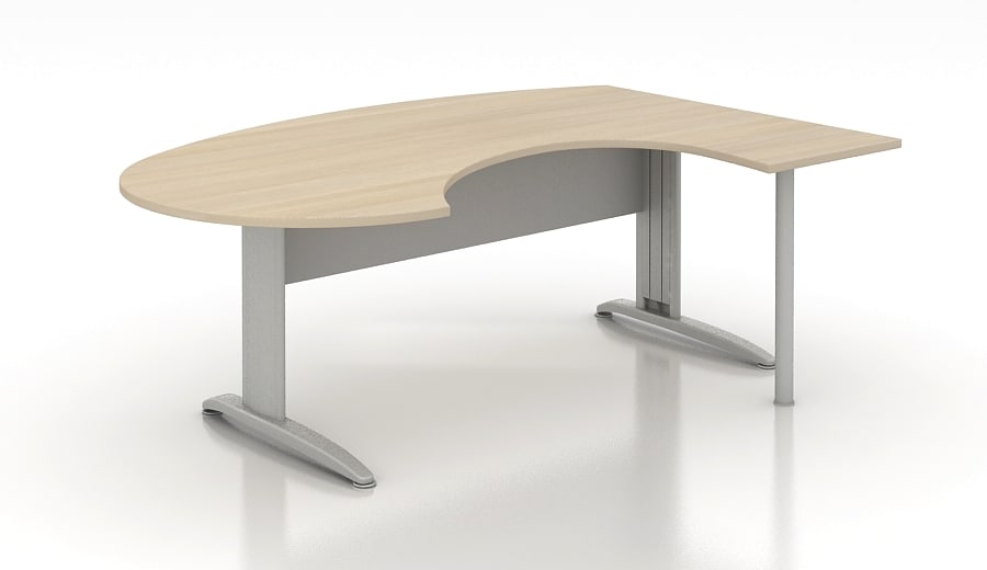 Mesa ejecutivo. Sobre de melamina de 25 mm., faldón de 19 mm. Con cantos ABS. Estructura metálica con perfil ovalado de acero. Dotada de perfil de subida de cables extraible, con conductos interiores para el cableado.