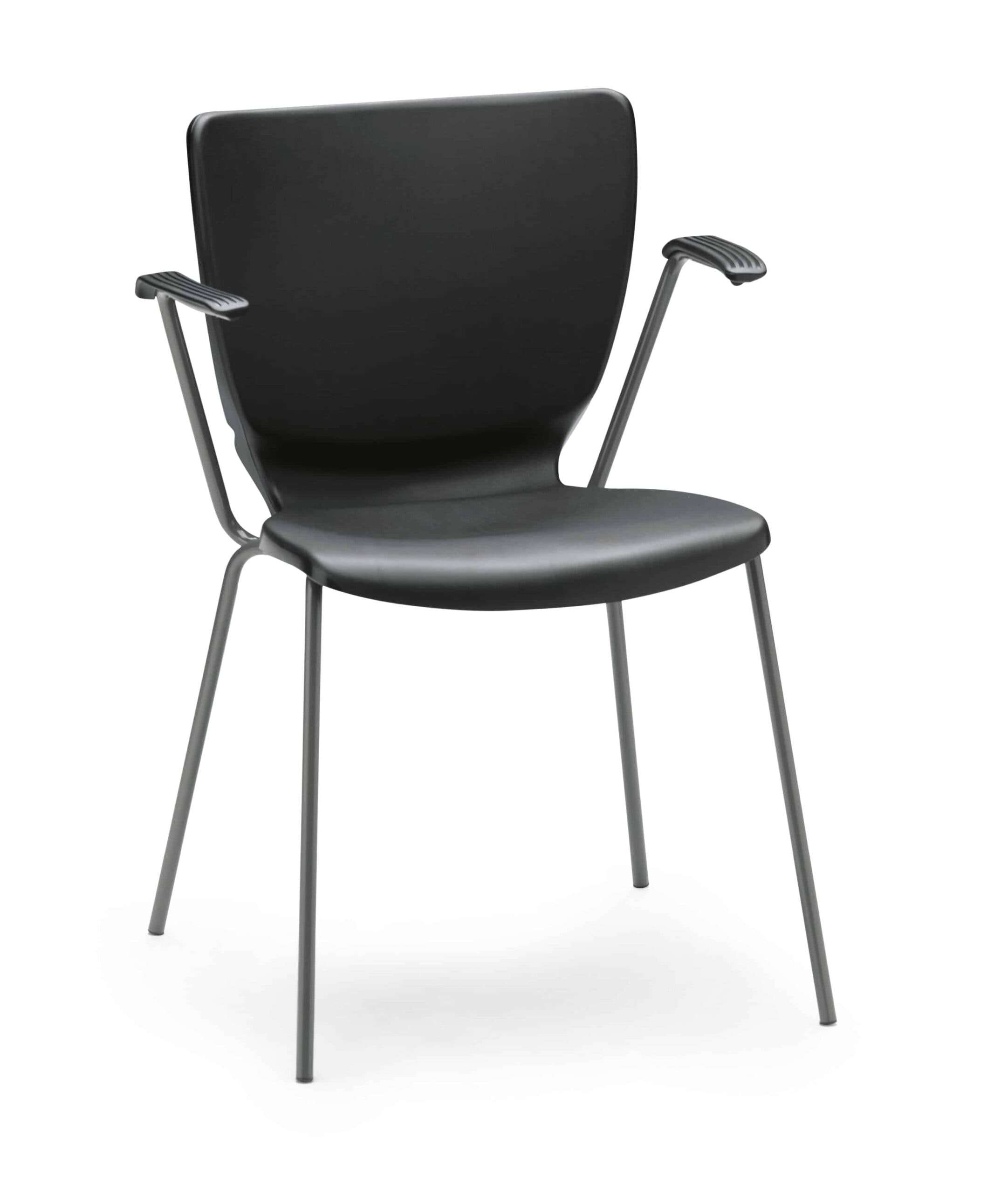 Estructura de tubo de acero redondo. Asiento y respaldo fabricado en polipropileno. Apilable.