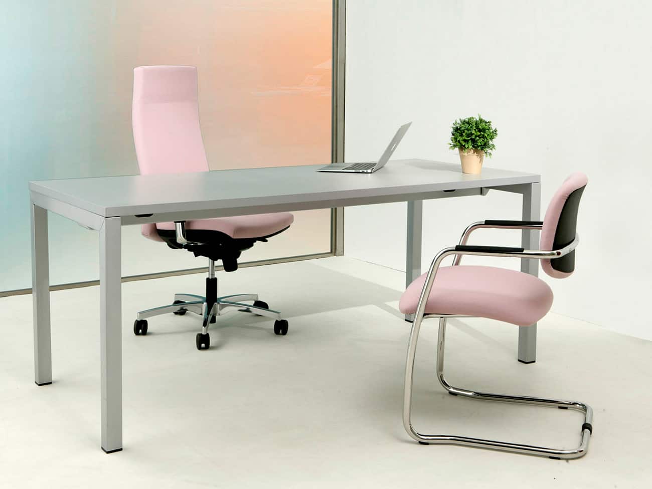 Colección de sillones de uso confidente y conferencia o reunión de carácter multifuncional y polivalente, ergonómicos, modernos y funcionales, encajan en cualquier tipo de espacio, siendo sillas perfectas tanto para acompañar a cualquier silla operativa como para su uso independiente. El confortable asiento volado en su parte trasera, facilita el apilado en los modelos fijos y estiliza su diseño. Estructura disponible en negro o cromada.