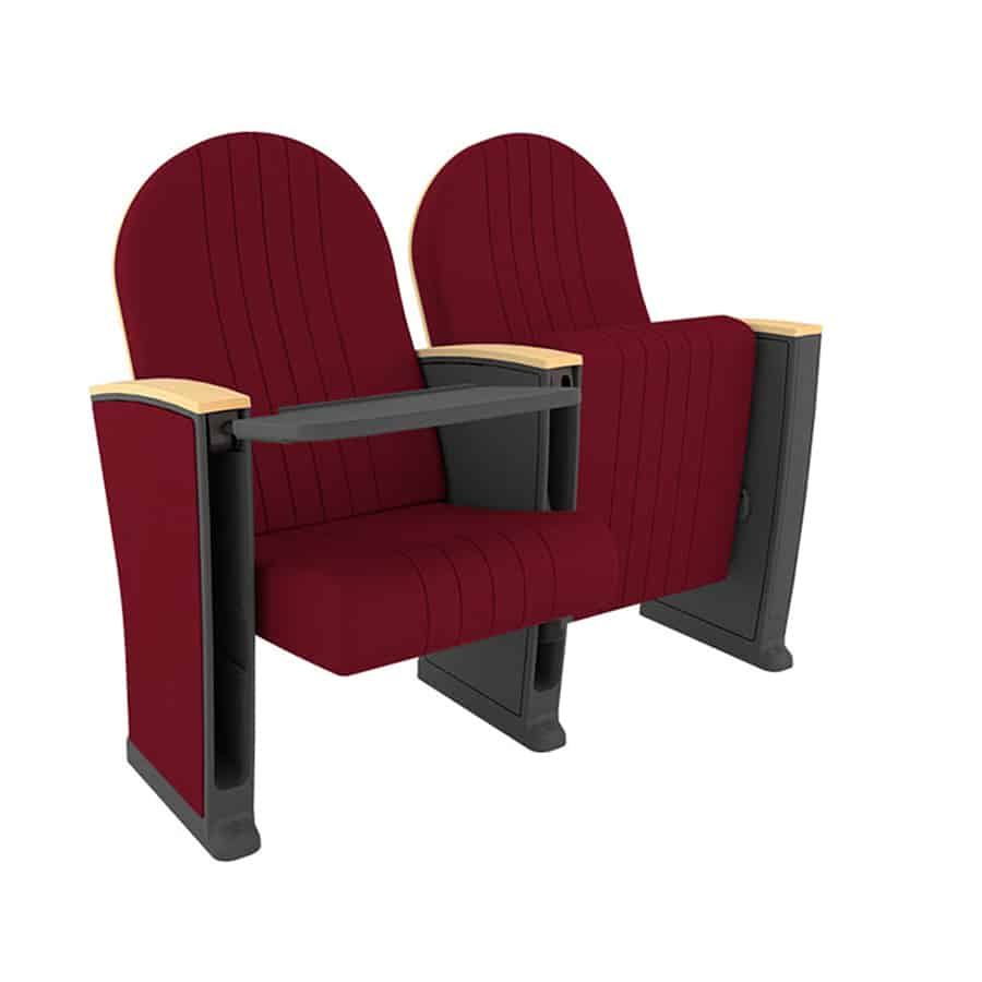 Un toque de distinción, innovación y tradición en una misma butaca, con acabados en maderas de primera calidad. Pensada para auditorios, teatros, salas de conferencia, palacios de congresos, centros educativos, etc. Respaldo: espuma de poliuretano moldeada en frío, que envuelve completamente un bastidor de inyección de polipropileno, tapizado posterior mediante funda de tejido, todo ello protegido por una trasera de laminado 3D mediante sistema LYF. Asiento: espuma de poliuretano moldeada en frío, que envuelve completamente un bastidor de inyección de polipropileno, tapizado posterior mediante funda de tejido. El plegado del asiento se produce mediante doble resorte de forma automática y silenciosa. Costado: inyección de polipropileno texturizado. Sistema de pala de escritura antipánico de poliestireno estructura interior metálica, alojado en el interior del costado. Tapas final de fila completamente tapizadas o con acabado laminado 3D mediante sistema LYF. Brazo: inyección de polipropileno texturizado de forma rectangular. Dimensiones: 55 a 57 cm ancho entre ejes, 52 cm largo, 95 cm alto.