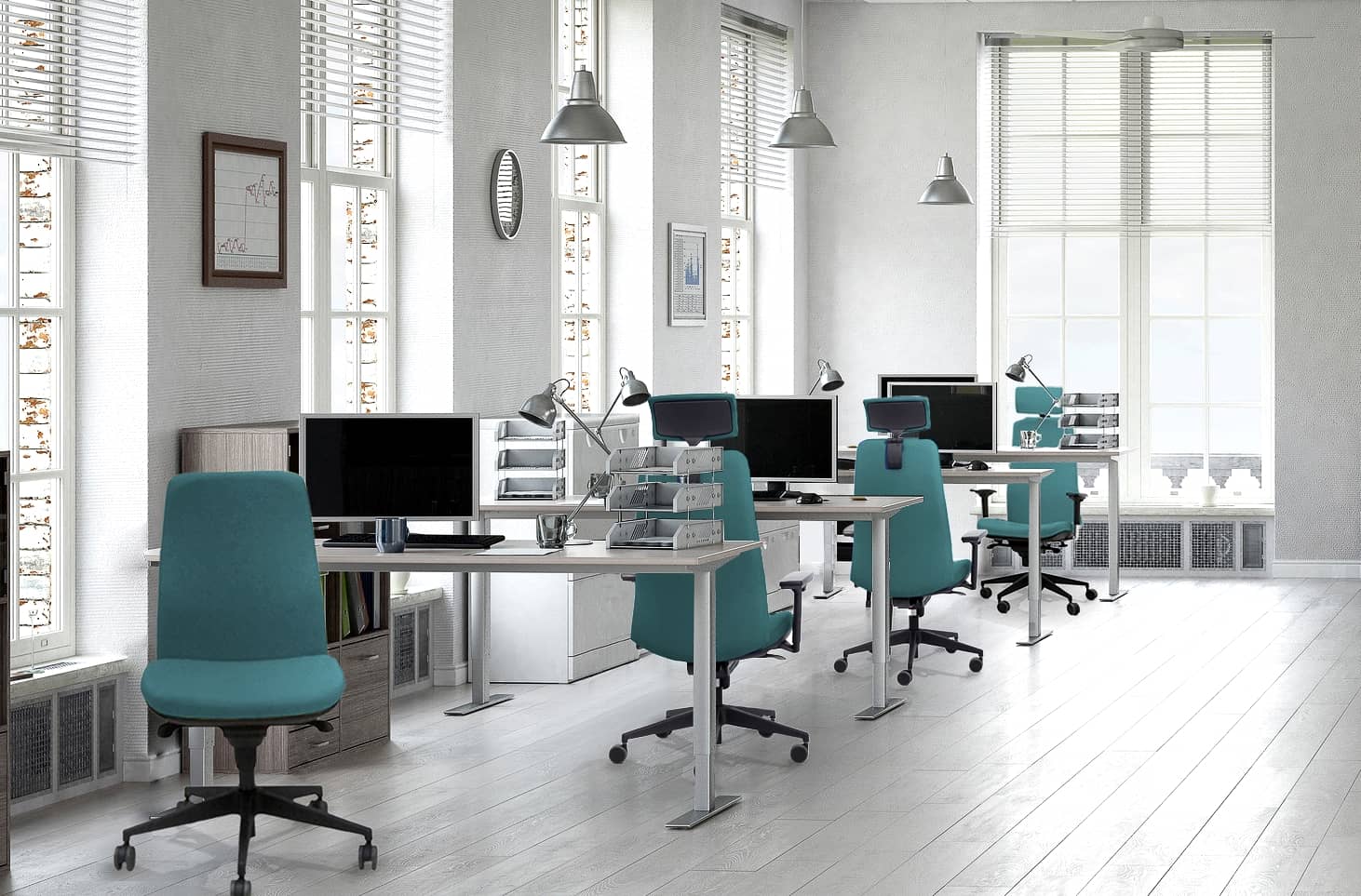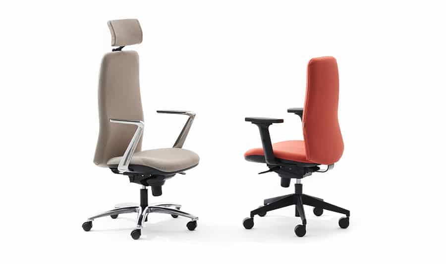 Ergonomía y comodidad son sus señas de identidad. La flexibilidad en sus opciones y posibilidad de tapizados permiten su personalización. Sillas ergonómicas para todo tipo de puestos de trabajo. Respaldo mullido completamente tapizado sobre interior de madera y espuma flexible de PU de alta densidad. DOS ALTURAS de respaldo disponibles (RB y RA).