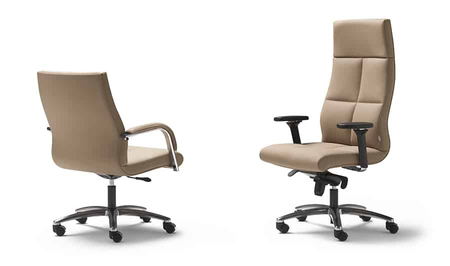 Destinado a un puesto direccional dentro de un espacio abierto. Lo que implica diferenciar sin desentonar. Una carcasa continua de asiento y respaldo tapizados confortablemente en todas sus vistas dan identidad a esta colección. Elegantes pespuntes en cruz para asiento y respaldo y opción de brazo fijo tapizado, acabados en cromo y el aluminio en su base giratoria, así como el mecanismo basculante o placa fija según su uso, son algunas de las opciones.