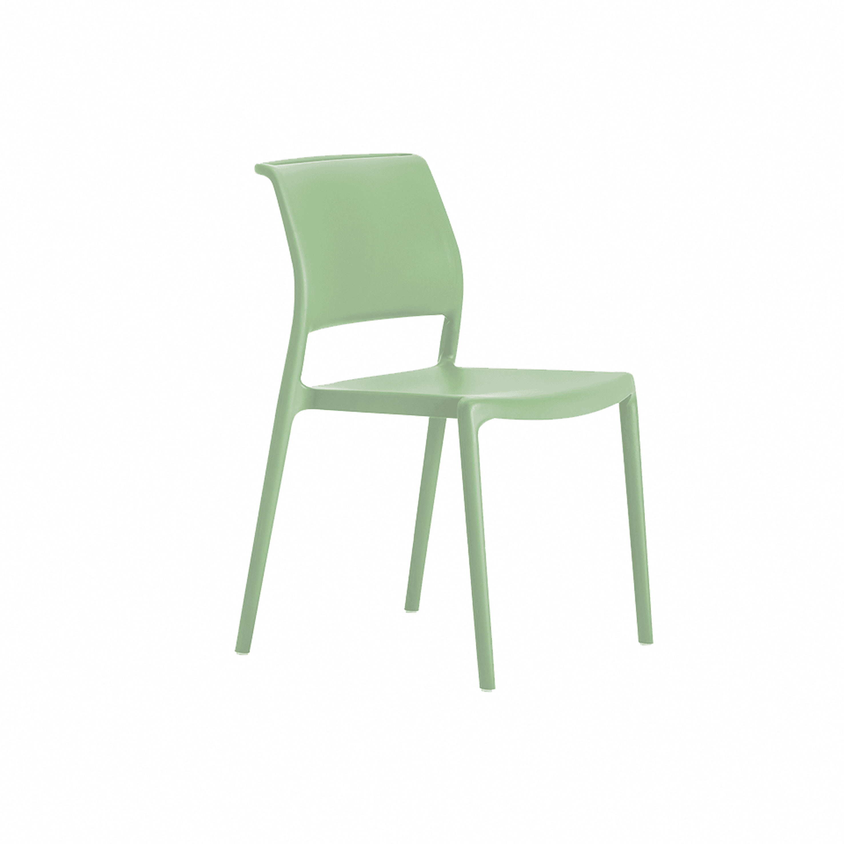 Silla completamente de polipropileno reforzado con fibra de vidrio; apilable, este producto es apto tanto para el interior como para el exterior. La estructura del respaldo forma, en la parte superior, un gran asa que facilita la elevación y el desplazamiento del asiento. Disponible con o sin brazos.