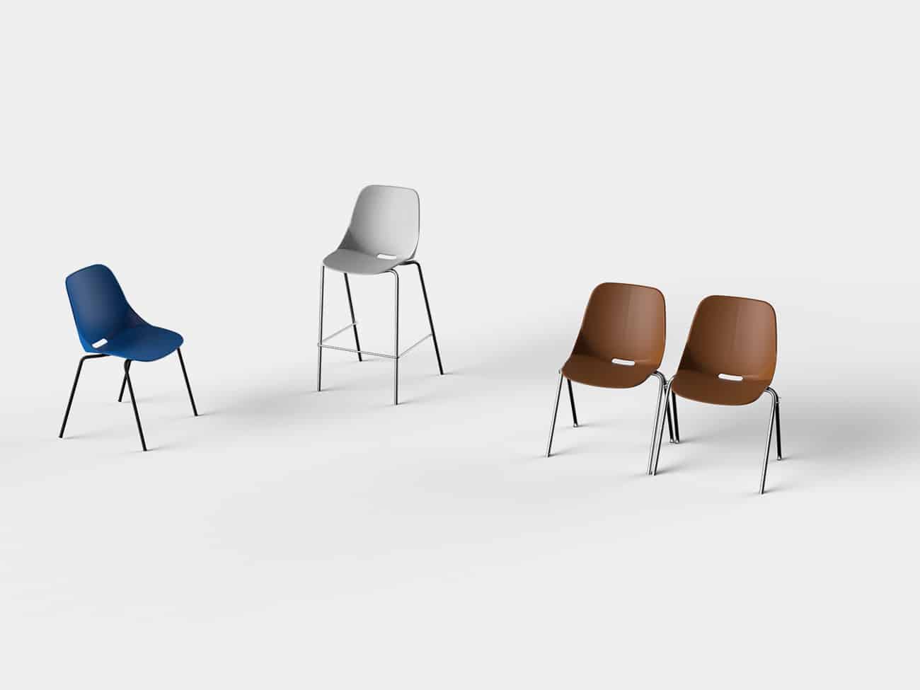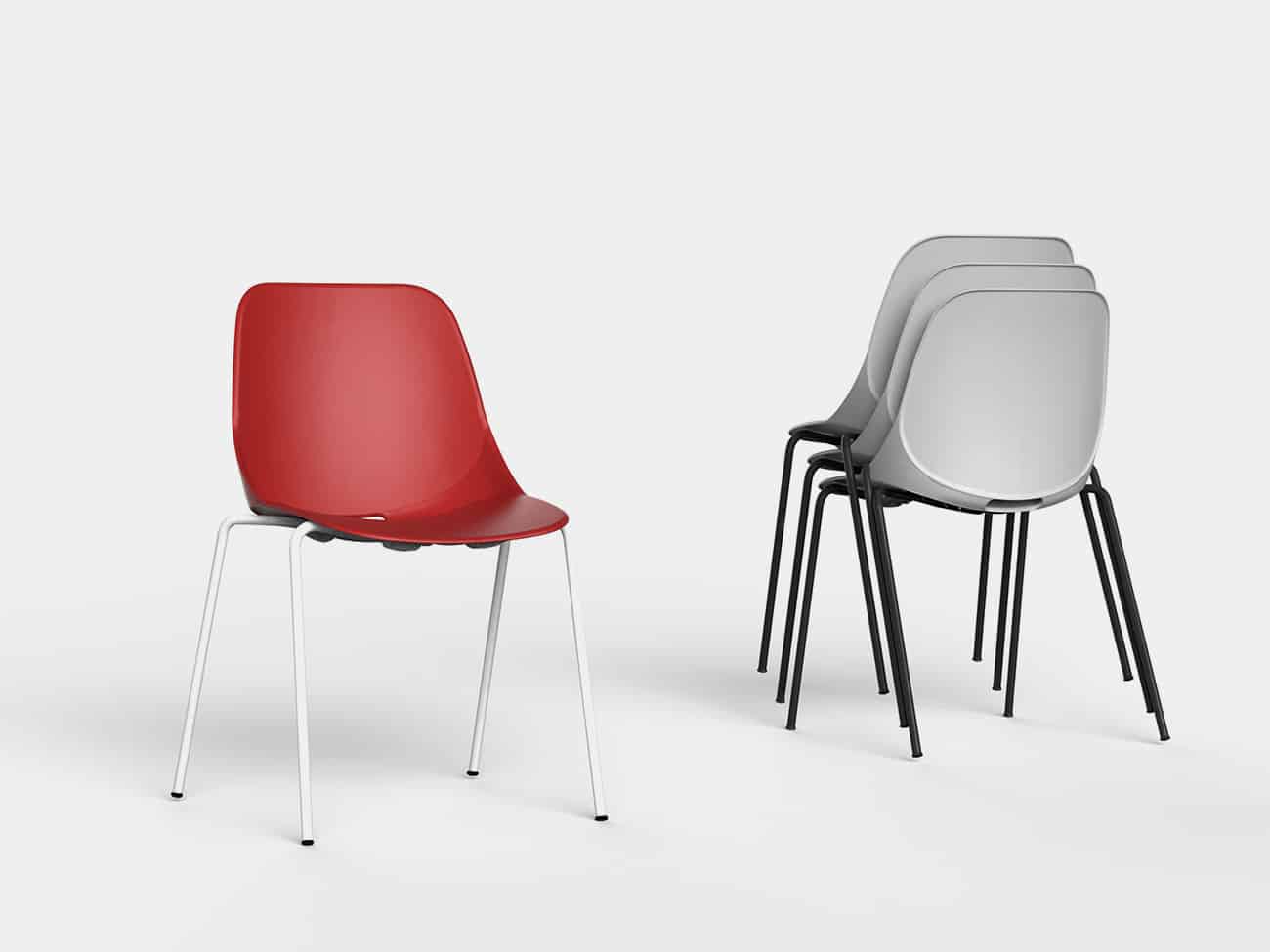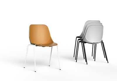 Silla Quick, fabricada con asiento y respaldo en monocarcasa de polipropileno. Estructura metálica. Estructura metálica de 4 patas fabricadas en tubo de acero redondo de Ø16 mm. Altura disponible T6. Opcional: asiento tapizado con galleta, brazos