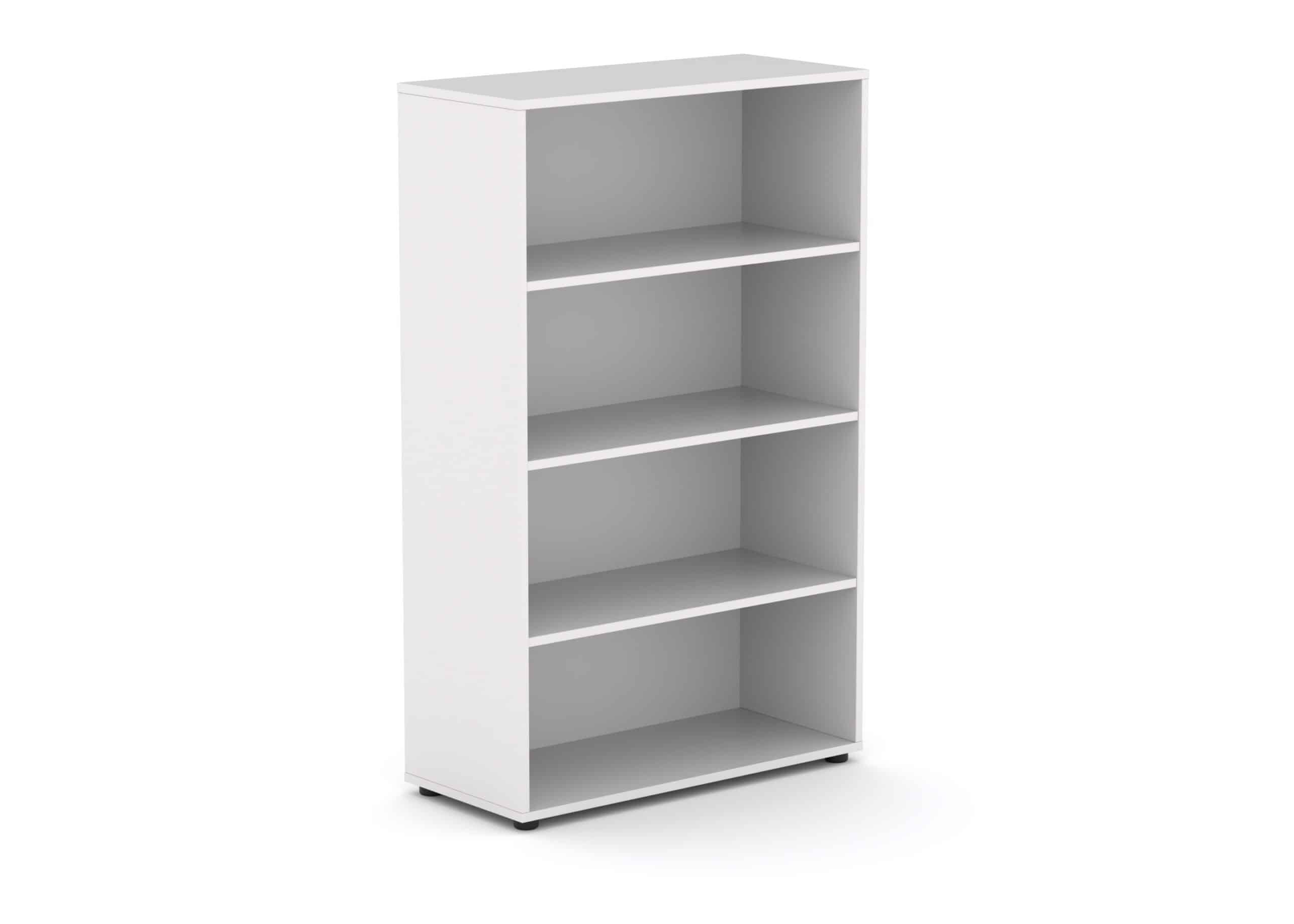 Estantería fabricada en melamina. Cuerpo de 19mm. y trasera de 8 mm. de espesor. Patas de PVC con nivelador interior. 3 estantes de 19 mm. canteado en PVC.