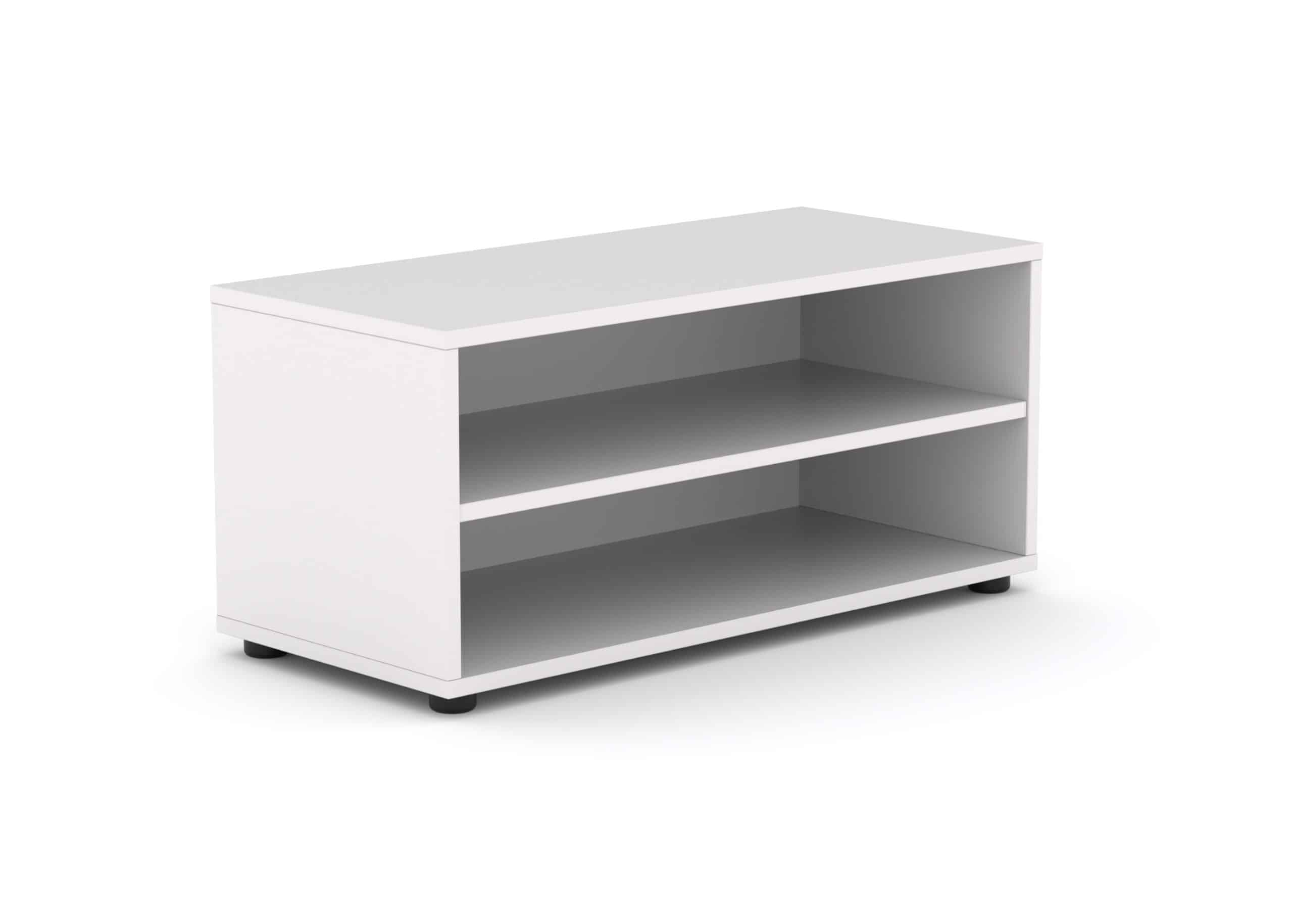 Estantería fabricada en melamina. Cuerpo de 19mm. y trasera de 8 mm. de espesor. Patas de PVC con nivelador interior. 1 estante de 19 mm. canteado en PVC.