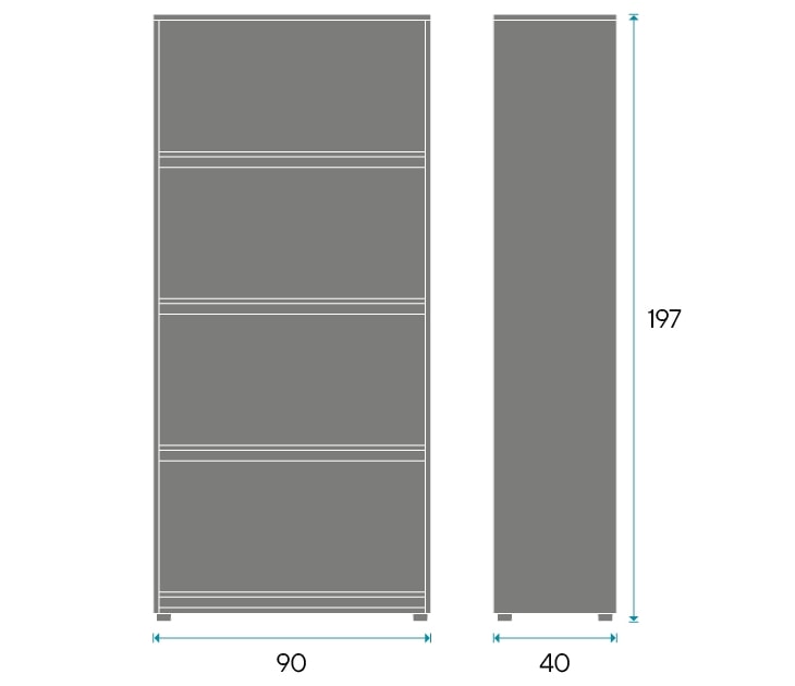 Revistero alto fabricado en melamina acabado madera nórdica y trasera en melamina blanca. Pies regulables en altura. Medidas: 90 ancho x 40 fondo x 197 alto