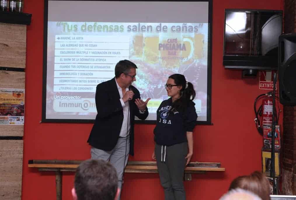 La siguiente decisión que abordó Corell fue pensar cuál es el mejor emplazamiento para enseñar. A la vista estaba que el aula clásica los alumnos lo asocian con un lugar “non grato” donde la jerarquía típica profesor alumno hace que la distancia entre ambos se incremente. Había que pensar en una ubicación distinta, trasladar el espacio físico para impartir conocimiento, buscando un entorno más…”amigable” y que los alumnos identificasen más cercano y próximo. ¿Cuál? ¡Un bar! De modo que Corell comenzó a ofrecer a sus alumnos la posibilidad de continuar sus clases “entre cañas”, en un bar; de hecho, no en vano, han bautizado estas clases como “tus defensas se van de cañas”. Y ojo, con una gran diferencia: son los propios alumnos quienes preparan material didáctico relacionado con la materia que imparte Corell, con un lenguaje accesible para los “parroquianos” del local. En estos vídeos los alumnos explican a otros usuarios del bar cómo se puede tratar una alergia, en qué consiste una vacuna o por qué los celiacos no pueden consumir determinados productos.